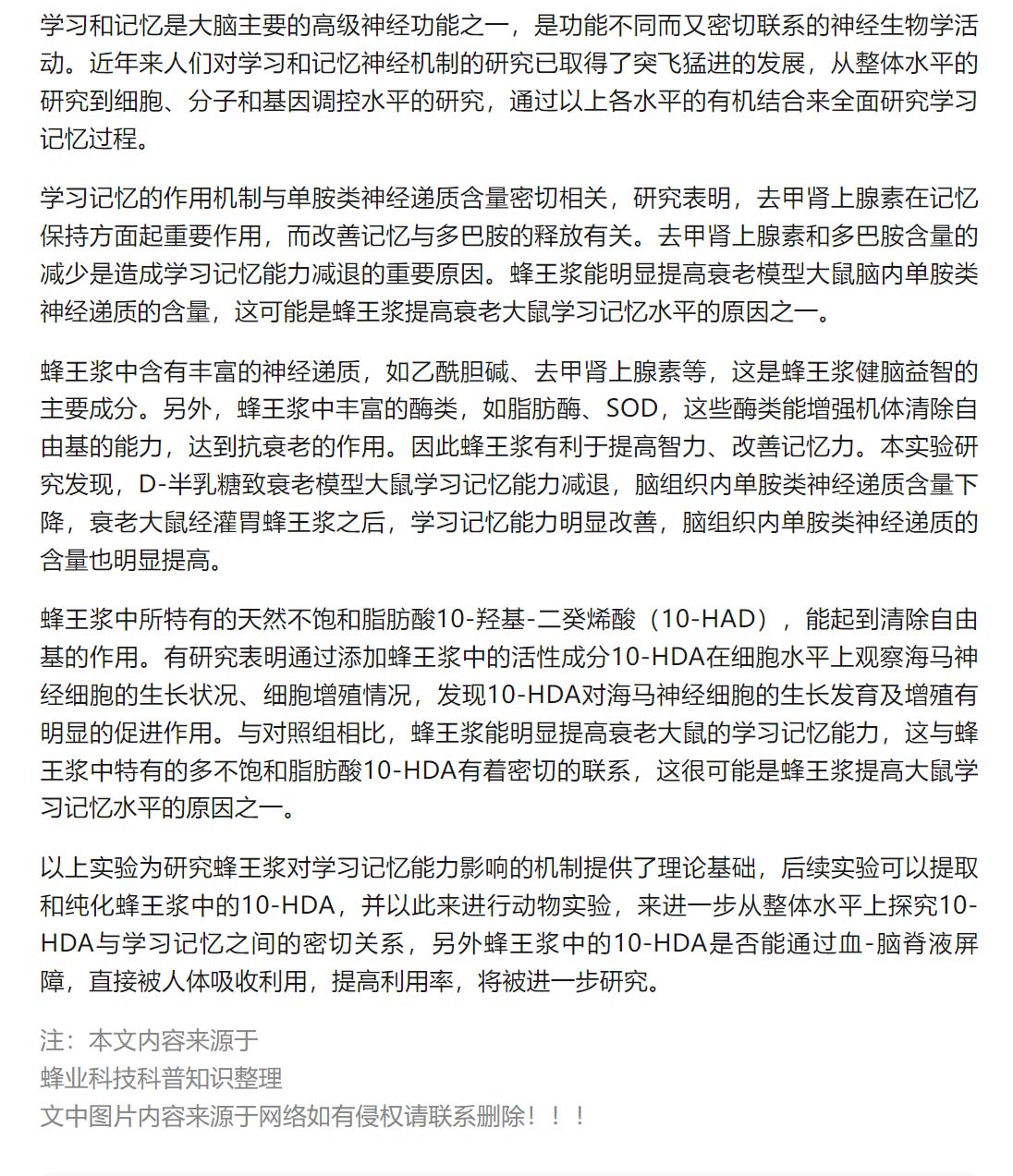 蜂王漿提高記憶力的原理解析 !